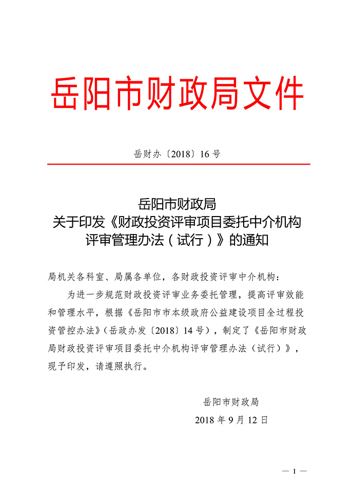 岳陽市財政局關于印發《財政投資評審項目委托中介機構評審管理辦法(試行)》的通知
